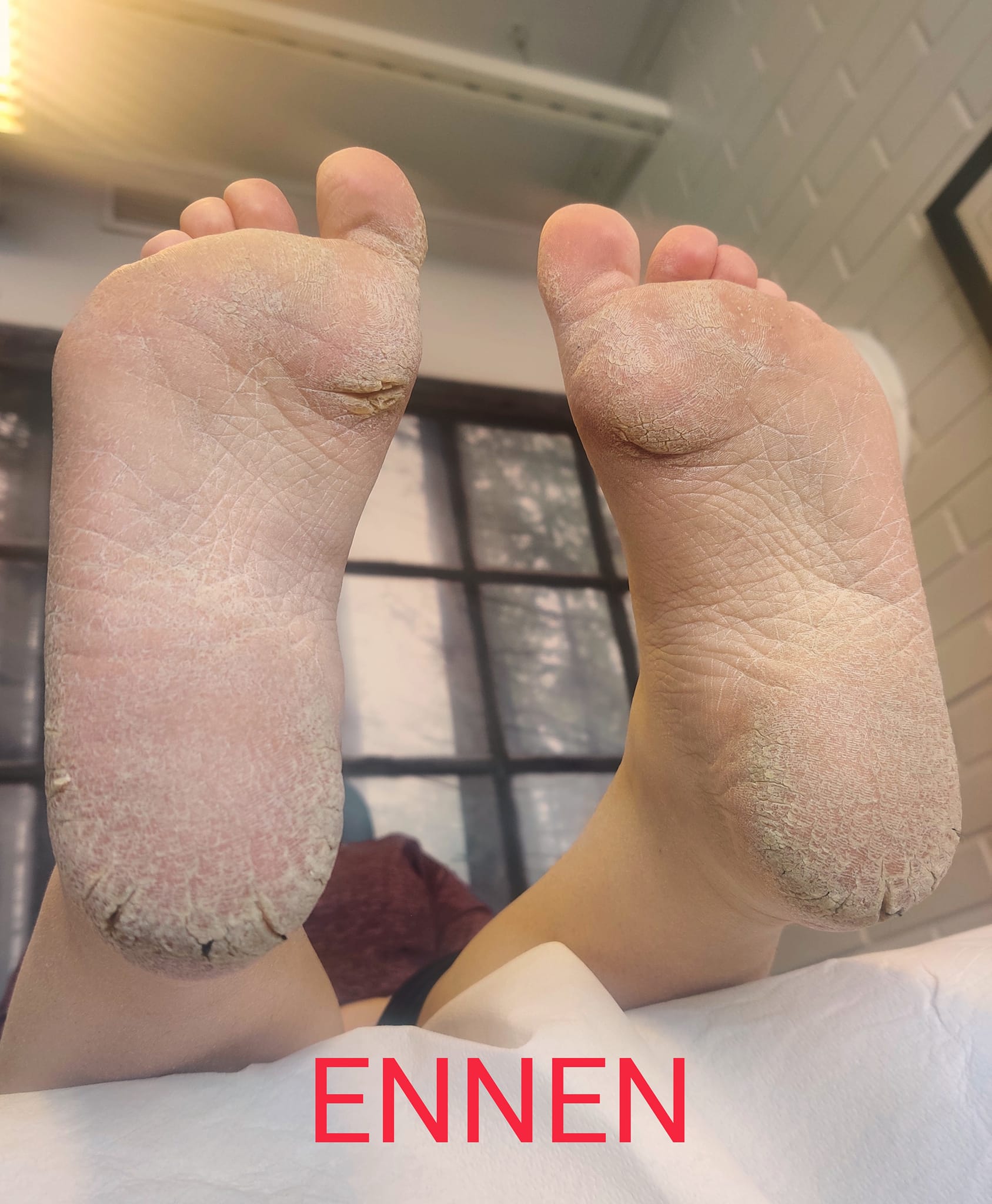 Ihon paksuuntuminen on normaali reaktio. Jalkapohjien kuorimitusalueille syntyy luonnollisia ihopaksunnoksia. Ne ovat merkki liikkumisesta ja alaraajojen kuormittumisesta, joten niitä ei olekaan tarkoitus poistaa. Ne pysyvät joustavina päivittäisellä rasvauksella.